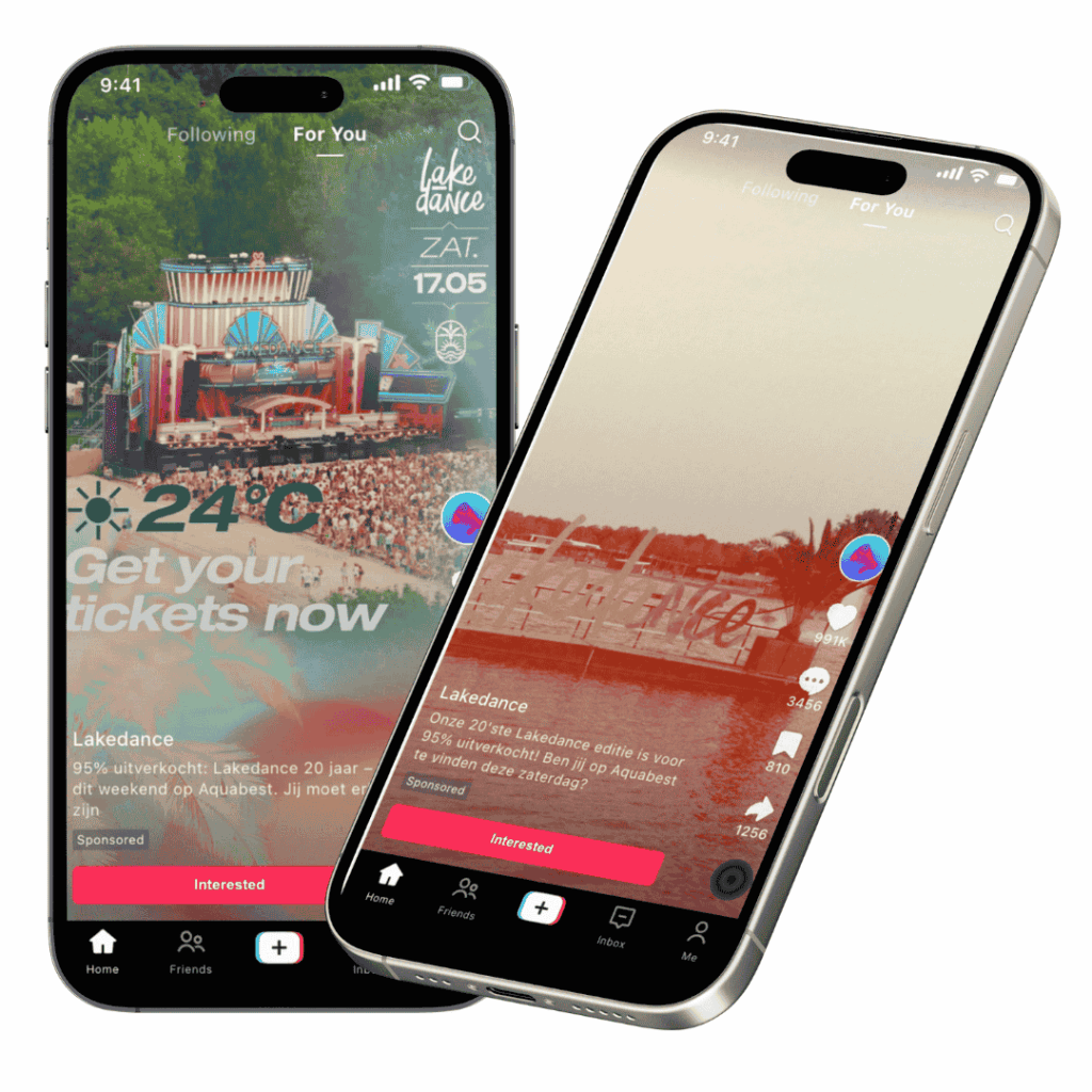 Gezien de visuele aantrekkingskracht van Lakedance en het efficiënt benaderen van de oudere, als jongere doelgroep, kozen we voor platforms zoals TikTok en META. Beide kanalen zijn zeer populair en bieden krachtige visuele advertentiemogelijkheden die goed aansluiten bij het feest- en festivalgevoel van Lakedance.