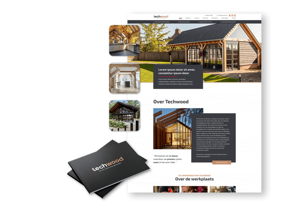 Bij Techwood weten ze wel raad met een moeilijke opdracht. Of het nou gaat om het bouwen van een carport of het opleveren van een complete woning, Techwood fixt het. De bouwwerken van Techwood waren hun tijd al vooruit, de website was dat nog niet. Wij ontwikkelden een flitsende website die net zo stevig staat als de Techwood-creaties.